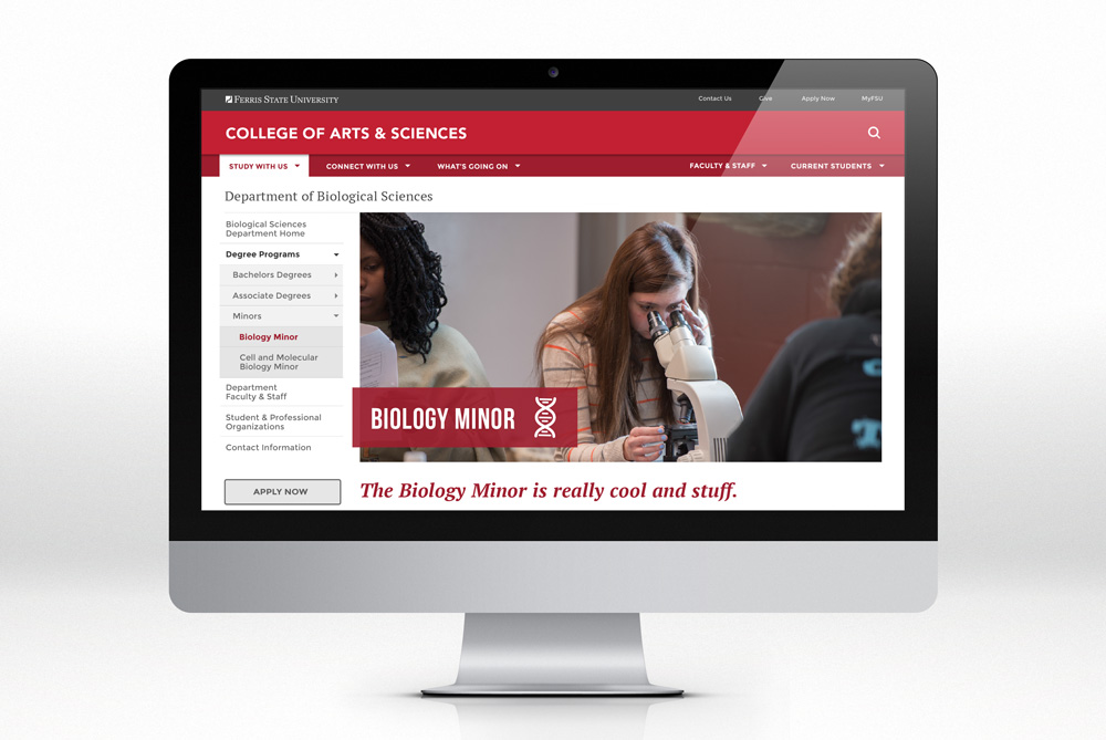 Attention spans in the online world are a very precious commodity. The previous FSU College of Arts & Sciences website suffers from information bloat and lack of curb appeal. Prospective students and other users alike are unlikely to put for the effort required to engage with the website.