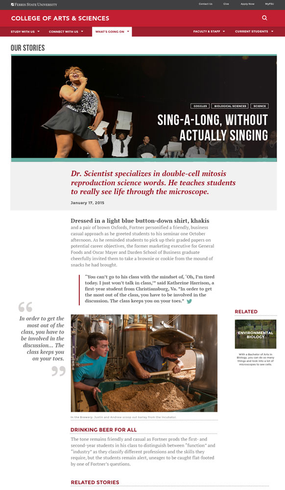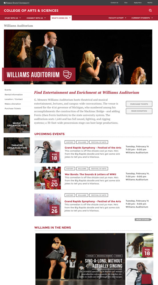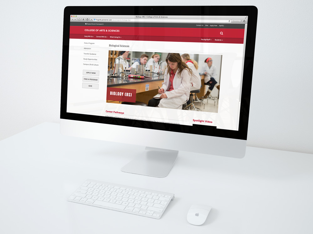 By rethinking content in the mindset of the main user types as identified by our research. We were able to redesign the web experience of FSU College of Arts & Sciences, increasing visual impact, ease of use, and user engagement. Through periodic updates of news items, stories and events we are able to more closely integrate the experience into students’ everyday life and make a more significant connection to the community.